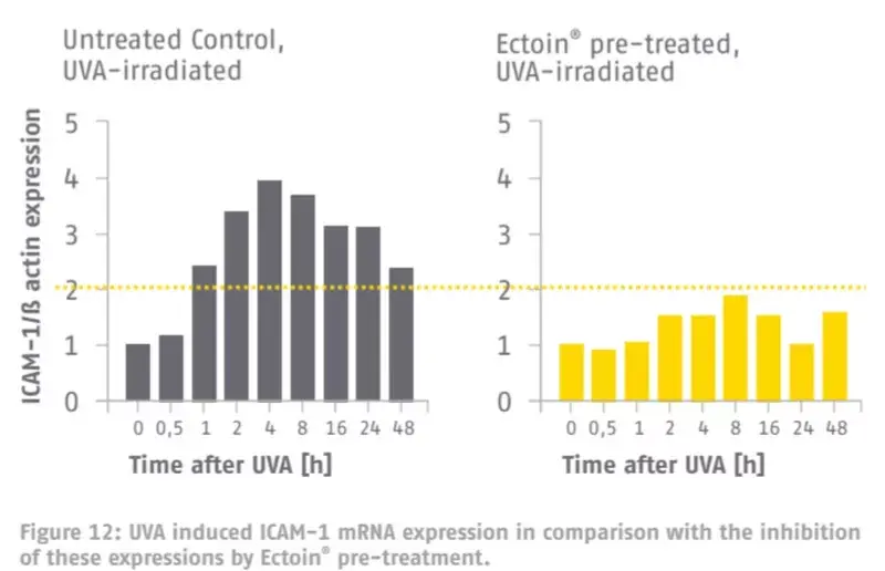 প্রদাহজনক অতিবেগুনি রশ্মি দ্বারা বিকিরণিত হলে, IKB kinase IKK সক্রিয় হয়, এবং সক্রিয় IKK IKK-এর ফসফোরিলেশনকে প্ররোচিত করে, যা ফাইব্রোব্লাস্ট এবং কেরাটিনোসাইটগুলিতে NF-κB ট্রান্সক্রিপশন ফ্যাক্টরগুলিকে সক্রিয় করে, যা প্রো-কিনেস, TαIL1-এর নিঃসরণ ঘটায়। IL-6), প্রদাহজনক প্রতিক্রিয়ার ফলে।