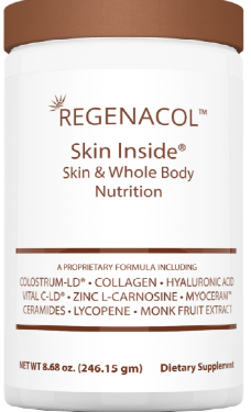 রেজেনাকল ওরাল বিউটি সাপ্লিমেন্টে রয়েছে বোভাইন কোলোস্ট্রাম, ভিটামিন সি, বোভাইন কোলাজেন পেপটাইড এবং লাইকোপেন। লাইকোপিন প্রোকোলাজেনের মাত্রা বাড়াতে পারে (কোলাজেনের অগ্রদূত), যা ত্বকের বয়স কমাতে সাহায্য করে এবং অতিবেগুনি রশ্মির কারণে হওয়া ক্ষতি থেকে ত্বককে রক্ষা করে।